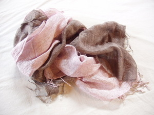 こちらは庭のびわで染めた草木染めの絹....