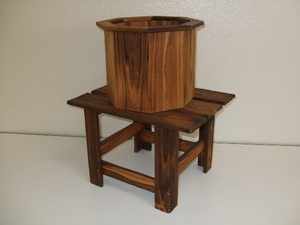 焼き杉の加工を施した、花台です。水に....