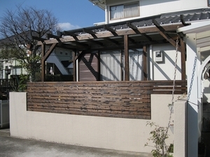パーゴラ付きウッドデッキとフェンス     [ 大分市 ]   工芸品  -  木工品 -  その他