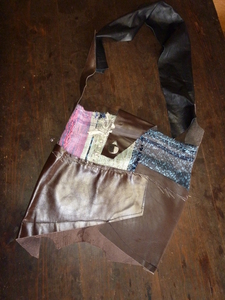 本革とさをり手織り生地という、異素材....