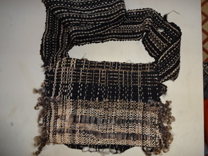 黒とこげ茶のベーシックな色合いの手織....
