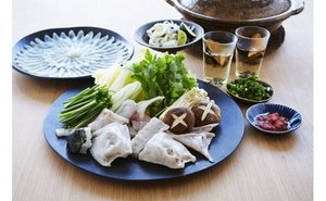ふぐの刺身、ふぐちり鍋、ふぐ雑炊、ふぐのひれ酒。ご家庭でとらふぐのコースが召し上がれます。年末年始など家族や友人、恋人など特別な人が集まる場、また大事な人への贈り物としてご利用ください。 |